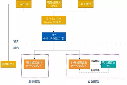 通常來說,有以下四個步驟實現(xiàn) VIE 結(jié)構(gòu): (一)設(shè)立海外第一層權(quán)益主體——BVI 公司 在英屬維爾京群島(BVI)注冊成立第一層權(quán)益主體 BVI 公司的原因為,BVI 對公司注冊的要求簡單,成立程序快捷、維續(xù)成本低廉、保密性高;寬松的外匯管制;無須繳付任何所得稅、預(yù)提稅、資本利得稅、資本轉(zhuǎn)移稅、繼承稅、遺產(chǎn)稅或財產(chǎn)稅。BVI 作為創(chuàng)始股東的持股主體,股東用自己 100% 持有的 BVI 公司持有其在開曼公司的股份,而非個人直接在開曼公司持股,若以后開曼公司有分紅或者出售股票所得收入,該項收入進(jìn)入 BVI 公司而非個人,BVI 免稅且具保密性,股東避免了被立即征收個稅,具有遞延納稅或者可能免稅的功能。 (二)設(shè)立海外第二級權(quán)益主體——開曼公司 現(xiàn)紐約證券交易所、納斯達(dá)克交易所和香港聯(lián)交所等國際知名交易所都接受注冊在開曼群島、英屬維爾京群島(BVI)的公司掛牌上市。但因 BVI 注冊公司透明度低不易被接受,所以選擇開曼作為上市主體。 (三)設(shè)立海外第三級權(quán)益主體——香港殼公司 香港跟中國大陸有稅收優(yōu)惠政策,即《關(guān)于建立更緊密經(jīng)貿(mào)關(guān)系的安排》的英文簡稱。包括中央政府與香港特區(qū)政府簽署的《內(nèi)地與香港關(guān)于建立更緊密經(jīng)貿(mào)關(guān)系的安排》。設(shè)置一層香港,未來大陸公司向股東分紅等可能會享受一些稅收優(yōu)惠政策;從具體注冊操作層面講,用香港作為股東在境內(nèi)設(shè)立外商投資企業(yè)(WFOE),需要對股東進(jìn)行公證,而香港公司的公證費用和時間成本,均比對開曼進(jìn)行公證節(jié)約很多。 (四)香港殼公司在境內(nèi)設(shè)立 WFOE(Wholly Foreign Owned Enterprise) WFOE與境內(nèi)運營實體公司簽訂一系列協(xié)議,達(dá)到利潤轉(zhuǎn)移及非股權(quán)控制的目的。 |