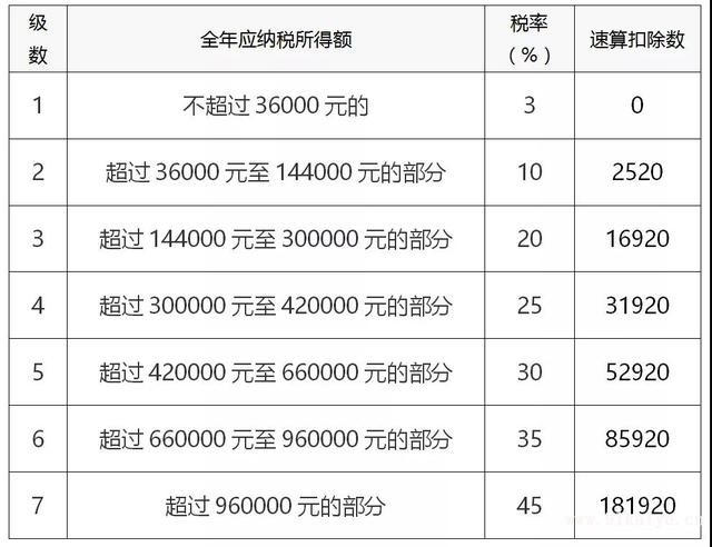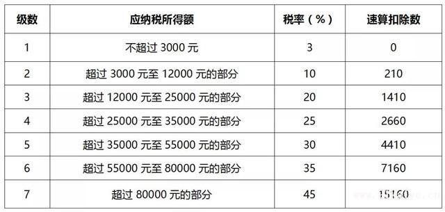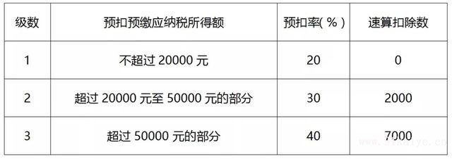 個人所得稅的稅率是小伙伴,進行計算相關(guān)稅費的關(guān)鍵,因此,有關(guān)新個人所得稅稅率表及速算扣除數(shù),大家是否否清楚呢?不少小伙伴在個稅年度匯算時,咨詢我們老師這個問題,為了讓大家正確地進行核算應(yīng)納稅額,小編整理了完整版的新個人所得稅稅率表及速算扣除數(shù),來看看吧,收藏起來備用吧! 一、 居民個人取得工資、薪金所得預(yù)扣預(yù)繳 扣繳義務(wù)人向居民個人支付工資、薪金所得時,按照累計預(yù)扣法計算預(yù)扣稅款,以納稅人在本單位截至當(dāng)前月份工資、薪金所得累計收入減除累計免稅收入、累計減除費用、累計專項扣除、累計專項附加扣除和累計依法確定的其他扣除后的余額為累計預(yù)扣預(yù)繳應(yīng)納稅所得額。預(yù)扣率按下表執(zhí)行。 個人所得稅預(yù)扣率表一 (居民個人工資、薪金所得預(yù)扣預(yù)繳適用) 二、 居民個人取得勞務(wù)報酬所得、稿酬所得、特許權(quán)使用費所得預(yù)扣預(yù)繳 居民個人取得勞務(wù)報酬所得、稿酬所得、特許權(quán)使用費所得預(yù)扣預(yù)繳時,以每次收入額為預(yù)扣預(yù)繳應(yīng)納稅所得額。具體的,收入額為收入減除費用后的余額。其中,稿酬所得的收入額減按百分之七十計算。減除費用:勞務(wù)報酬所得、稿酬所得、特許權(quán)使用費所得每次收入不超過四千元的,減除費用按八百元計算;每次收入四千元以上的,減除費用按收入的百分之二十計算。 稿酬所得、特許權(quán)使用費所得預(yù)扣率為20%;勞務(wù)報酬所得預(yù)扣率按下表執(zhí)行。 個人所得稅預(yù)扣率表二 (居民個人勞務(wù)報酬所得預(yù)扣預(yù)繳適用) 三、 非居民個人取得工資薪金所得、勞務(wù)報酬所得、稿酬所得、特許權(quán)使用費所得 非居民個人取得工資薪金所得以每月收入額減除費用五千元后的余額為應(yīng)納稅所得額。非居民個人取得勞務(wù)報酬所得、稿酬所得、特許權(quán)使用費所得,以每次收入額為應(yīng)納稅所得額。具體的,勞務(wù)報酬所得、稿酬所得、特許權(quán)使用費所得以收入減除百分之二十的費用后的余額為收入額;其中,稿酬所得的收入額減按百分之七十計算。 稅率表按下表執(zhí)行。 個人所得稅稅率表三 (非居民個人工資、薪金所得,勞務(wù)報酬所得,稿酬所得,特許權(quán)使用費所得適用) 四、 居民個人取得綜合所得 居民個人取得綜合所得,按年計算個人所得稅,以每一納稅年度的收入額減除費用六萬元以及專項扣除、專項附加扣除和依法確定的其他扣除后的余額,為應(yīng)納稅所得額,適用百分之三至百分之四十五的超額累進稅率。稅率表如下。 個人所得稅稅率表一 (綜合所得適用) 五、 納稅人取得經(jīng)營所得 納稅人取得經(jīng)營所得,按年計算個人所得稅,由納稅人在月度或者季度終了后十五日內(nèi)向稅務(wù)機關(guān)報送納稅申報表,并預(yù)繳稅款;在取得所得的次年三月三十一日前辦理匯算清繳。適用百分之五至百分之三十五的超額累進稅率。稅率表如下執(zhí)行。 個人所得稅稅率表二 (經(jīng)營所得適用) 六、 納稅人取得利息、股息、紅利所得,財產(chǎn)租賃所得,財產(chǎn)轉(zhuǎn)讓所得和偶然所得 納稅人取得利息、股息、紅利所得,財產(chǎn)租賃所得,財產(chǎn)轉(zhuǎn)讓所得和偶然所得,適用比例稅率,稅率為百分之二十。 政策依據(jù) 1. 《中華人民共和國個人所得稅法》 2. 《中華人民共和國個人所得稅法實施條例》 3. 《關(guān)于全面實施新個人所得稅法若干征管銜接問題的公告》(國家稅務(wù)總局公告2018年第56號) 以上是玖邀開業(yè)網(wǎng)小編為您整理的關(guān)于新個人所得稅稅率表及速算扣除數(shù)的內(nèi)容,希望對您有所幫助。 |