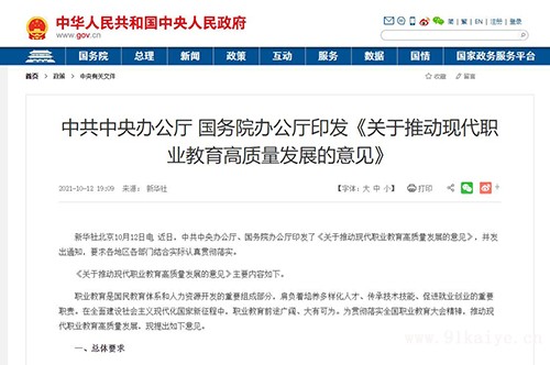 新華社北京10月12日電 近日,中共中央辦公廳、國務(wù)院辦公廳印發(fā)了《關(guān)于推動(dòng)現(xiàn)代職業(yè)教育高質(zhì)量發(fā)展的意見》,并發(fā)出通知,要求各地區(qū)各部門結(jié)合實(shí)際認(rèn)真貫徹落實(shí)。 《關(guān)于推動(dòng)現(xiàn)代職業(yè)教育高質(zhì)量發(fā)展的意見》主要內(nèi)容如下。 職業(yè)教育是國民教育體系和人力資源開發(fā)的重要組成部分,肩負(fù)著培養(yǎng)多樣化人才、傳承技術(shù)技能、促進(jìn)就業(yè)創(chuàng)業(yè)的重要職責(zé)。在全面建設(shè)社會(huì)主義現(xiàn)代化國家新征程中,職業(yè)教育前途廣闊、大有可為。為貫徹落實(shí)全國職業(yè)教育大會(huì)精神,推動(dòng)現(xiàn)代職業(yè)教育高質(zhì)量發(fā)展,現(xiàn)提出如下意見。 一、總體要求 (一)指導(dǎo)思想。以習(xí)近平新時(shí)代中國特色社會(huì)主義思想為指導(dǎo),深入貫徹黨的十九大和十九屆二中、三中、四中、五中全會(huì)精神,堅(jiān)持黨的領(lǐng)導(dǎo),堅(jiān)持正確辦學(xué)方向,堅(jiān)持立德樹人,優(yōu)化類型定位,深入推進(jìn)育人方式、辦學(xué)模式、管理體制、保障機(jī)制改革,切實(shí)增強(qiáng)職業(yè)教育適應(yīng)性,加快構(gòu)建現(xiàn)代職業(yè)教育體系,建設(shè)技能型社會(huì),弘揚(yáng)工匠精神,培養(yǎng)更多高素質(zhì)技術(shù)技能人才、能工巧匠、大國工匠,為全面建設(shè)社會(huì)主義現(xiàn)代化國家提供有力人才和技能支撐。 (二)工作要求。堅(jiān)持立德樹人、德技并修,推動(dòng)思想政治教育與技術(shù)技能培養(yǎng)融合統(tǒng)一;堅(jiān)持產(chǎn)教融合、校企合作,推動(dòng)形成產(chǎn)教良性互動(dòng)、校企優(yōu)勢(shì)互補(bǔ)的發(fā)展格局;堅(jiān)持面向市場(chǎng)、促進(jìn)就業(yè),推動(dòng)學(xué)校布局、專業(yè)設(shè)置、人才培養(yǎng)與市場(chǎng)需求相對(duì)接;堅(jiān)持面向?qū)嵺`、強(qiáng)化能力,讓更多青年憑借一技之長(zhǎng)實(shí)現(xiàn)人生價(jià)值;堅(jiān)持面向人人、因材施教,營(yíng)造人人努力成才、人人皆可成才、人人盡展其才的良好環(huán)境。 (三)主要目標(biāo) 到2025年,職業(yè)教育類型特色更加鮮明,現(xiàn)代職業(yè)教育體系基本建成,技能型社會(huì)建設(shè)全面推進(jìn)。辦學(xué)格局更加優(yōu)化,辦學(xué)條件大幅改善,職業(yè)本科教育招生規(guī)模不低于高等職業(yè)教育招生規(guī)模的10%,職業(yè)教育吸引力和培養(yǎng)質(zhì)量顯著提高。 到2035年,職業(yè)教育整體水平進(jìn)入世界前列,技能型社會(huì)基本建成。技術(shù)技能人才社會(huì)地位大幅提升,職業(yè)教育供給與經(jīng)濟(jì)社會(huì)發(fā)展需求高度匹配,在全面建設(shè)社會(huì)主義現(xiàn)代化國家中的作用顯著增強(qiáng)。 二、強(qiáng)化職業(yè)教育類型特色 (四)鞏固職業(yè)教育類型定位。因地制宜、統(tǒng)籌推進(jìn)職業(yè)教育與普通教育協(xié)調(diào)發(fā)展。加快建立“職教高考”制度,完善“文化素質(zhì)+職業(yè)技能”考試招生辦法,加強(qiáng)省級(jí)統(tǒng)籌,確保公平公正。加強(qiáng)職業(yè)教育理論研究,及時(shí)總結(jié)中國特色職業(yè)教育辦學(xué)規(guī)律和制度模式。 (五)推進(jìn)不同層次職業(yè)教育縱向貫通。大力提升中等職業(yè)教育辦學(xué)質(zhì)量,優(yōu)化布局結(jié)構(gòu),實(shí)施中等職業(yè)學(xué)校辦學(xué)條件達(dá)標(biāo)工程,采取合并、合作、托管、集團(tuán)辦學(xué)等措施,建設(shè)一批優(yōu)秀中等職業(yè)學(xué)校和優(yōu)質(zhì)專業(yè),注重為高等職業(yè)教育輸送具有扎實(shí)技術(shù)技能基礎(chǔ)和合格文化基礎(chǔ)的生源。支持有條件的中等職業(yè)學(xué)校根據(jù)當(dāng)?shù)亟?jīng)濟(jì)社會(huì)發(fā)展需要試辦社區(qū)學(xué)院。推進(jìn)高等職業(yè)教育提質(zhì)培優(yōu),實(shí)施好“雙高計(jì)劃”,集中力量建設(shè)一批高水平高等職業(yè)學(xué)校和專業(yè)。穩(wěn)步發(fā)展職業(yè)本科教育,高標(biāo)準(zhǔn)建設(shè)職業(yè)本科學(xué)校和專業(yè),保持職業(yè)教育辦學(xué)方向不變、培養(yǎng)模式不變、特色發(fā)展不變。一體化設(shè)計(jì)職業(yè)教育人才培養(yǎng)體系,推動(dòng)各層次職業(yè)教育專業(yè)設(shè)置、培養(yǎng)目標(biāo)、課程體系、培養(yǎng)方案銜接,支持在培養(yǎng)周期長(zhǎng)、技能要求高的專業(yè)領(lǐng)域?qū)嵤╅L(zhǎng)學(xué)制培養(yǎng)。鼓勵(lì)應(yīng)用型本科學(xué)校開展職業(yè)本科教育。按照專業(yè)大致對(duì)口原則,指導(dǎo)應(yīng)用型本科學(xué)校、職業(yè)本科學(xué)校吸引更多中高職畢業(yè)生報(bào)考。 (六)促進(jìn)不同類型教育橫向融通。加強(qiáng)各學(xué)段普通教育與職業(yè)教育滲透融通,在普通中小學(xué)實(shí)施職業(yè)啟蒙教育,培養(yǎng)掌握技能的興趣愛好和職業(yè)生涯規(guī)劃的意識(shí)能力。探索發(fā)展以專項(xiàng)技能培養(yǎng)為主的特色綜合高中。推動(dòng)中等職業(yè)學(xué)校與普通高中、高等職業(yè)學(xué)校與應(yīng)用型大學(xué)課程互選、學(xué)分互認(rèn)。鼓勵(lì)職業(yè)學(xué)校開展補(b