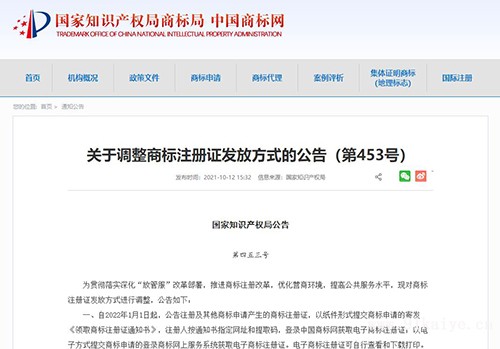 國家知識產(chǎn)權局公告 第四五三號 為貫徹落實深化“放管服”改革部署,推進商標注冊改革,優(yōu)化營商環(huán)境,提高公共服務水平,現(xiàn)對商標注冊證發(fā)放方式進行調整,公告如下: 一、自2022年1月1日起,公告注冊及其他商標申請產(chǎn)生的商標注冊證,以紙件形式提交商標申請的寄發(fā)《領取商標注冊證通知書》,注冊人按通知書指定網(wǎng)址和提取碼,登錄中國商標網(wǎng)獲取電子商標注冊證;以電子方式提交商標申請的登錄商標網(wǎng)上服務系統(tǒng)獲取電子商標注冊證。電子商標注冊證可自行查看和下載打印。國家知識產(chǎn)權局不再發(fā)放紙質商標注冊證。 二、設立過渡期,2021年10月15日至12月31日期間,公告注冊及其他商標申請產(chǎn)生的商標注冊證,以紙件形式提交商標申請的寄發(fā)《領取商標注冊證通知書》,注冊人按通知書指定網(wǎng)址和提取碼,登錄中國商標網(wǎng)獲取電子商標注冊證,同時寄發(fā)紙質商標注冊證;以電子方式提交商標申請的發(fā)放方式暫時不變。 特此公告。 國家知識產(chǎn)權局 2021年10月9日 |