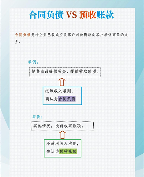 合同負(fù)債和預(yù)收賬款的區(qū)別 1.預(yù)收賬款——指企業(yè)向購貨方預(yù)收的訂金或部分貨款。預(yù)收賬款是以買賣雙方協(xié)議或合同為依據(jù),由購貨方預(yù)先支付一部分(或全部)貨款給供應(yīng)方而發(fā)生的一項負(fù)債,這項負(fù)債要用以后的商品或勞務(wù)來償付。企業(yè)預(yù)收的貨款待實際出售商品、產(chǎn)品或者提供勞務(wù)時再行沖減。 2.合同負(fù)債——指企業(yè)已收或應(yīng)收客戶對價而應(yīng)向客戶轉(zhuǎn)讓商品的義務(wù),如企業(yè)在轉(zhuǎn)讓承諾的商品之前已收取的款項。 合同負(fù)債和預(yù)收賬款的共同之處在于二者都是一項依據(jù)合同規(guī)定、有商業(yè)實質(zhì)、與收入相關(guān)的負(fù)債,二者在未來都能轉(zhuǎn)為收入。 這里需要強(qiáng)調(diào)的是,與設(shè)備融資租賃等“21號會計準(zhǔn)則——租賃”下交易事項相關(guān)的預(yù)收定金/租金,無需區(qū)分合同負(fù)債、預(yù)收賬款,仍統(tǒng)一在預(yù)收賬款科目核算。 至于合同負(fù)債與預(yù)收賬款的區(qū)別,主要可分為以下四點: 1.合同是否成立 預(yù)收賬款:不強(qiáng)調(diào)合同是否成立,合同成立前已收到的對價是預(yù)收賬款,不能劃分為合同負(fù)債。 合同負(fù)債:合同成立后從預(yù)收賬款轉(zhuǎn)向合同負(fù)債 2.前提 預(yù)收賬款:已收到款項 合同負(fù)債:以履約義務(wù)為前提,如預(yù)收的款項與合同規(guī)定的履約義務(wù)無關(guān),只能作為預(yù)收款項。 3.商品和交貨期 預(yù)收賬款:往往已約定 合同負(fù)債:尚未確定 4.核算范圍差異 預(yù)收賬款:只能核算實際已經(jīng)收到的預(yù)收賬款 合同負(fù)債:能核算實際已收到的預(yù)收賬款和未實際收到但已擁有收款權(quán)利的預(yù)收款。 以上是91開業(yè)網(wǎng)小編為您整理的關(guān)于合同負(fù)債和預(yù)收賬款的區(qū)別的內(nèi)容,希望對您有所幫助。 |