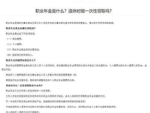 職業(yè)年金怎么領(lǐng)取 按月領(lǐng)取:工作人員辦理退休手續(xù)后,由本人選擇按月領(lǐng)取職業(yè)年金待遇的方式。 一次性支付:出國(guó)定居人員的職業(yè)年金個(gè)人賬戶資金,可一次性支付給本人。 余額繼承:工作人員在職期間死亡的,其職業(yè)年金個(gè)人賬戶余額可以繼承。 職業(yè)年金功能 第一,補(bǔ)充養(yǎng)老。從本質(zhì)上看,職業(yè)年金是職工工資的延期支付,這種延期支付的目的是為未來(lái)的退休養(yǎng)老做準(zhǔn)備,以避免基本養(yǎng)老保險(xiǎn)不足時(shí)所帶來(lái)的生活水平的下降,職業(yè)年金從這個(gè)意義上講是作為一種補(bǔ)充養(yǎng)老保險(xiǎn)。從這個(gè)基本功能,我們還可以引申出職業(yè)年金具有緩解國(guó)家財(cái)政壓力的作用。所以,職業(yè)年金是基本養(yǎng)老保險(xiǎn)的補(bǔ)充,對(duì)降低基本養(yǎng)老保險(xiǎn)替代率,緩解財(cái)政壓力起著很重要的作用。 第二,福利激勵(lì)。職業(yè)年金的實(shí)質(zhì)是將職工現(xiàn)期的一部分工資轉(zhuǎn)移到退休后,對(duì)于事業(yè)單位來(lái)說(shuō),如果將其作為人力資源管理的一個(gè)手段或工具,方案,就可以給予職工薪酬福利方面的激勵(lì),提高職工工作效率和積極性,穩(wěn)定單位勞動(dòng)力隊(duì)伍,另一方面也可以用來(lái)吸引和留住一些優(yōu)秀管理和技術(shù)人才,提高單位的綜合實(shí)力。 第三,合理避稅。從企業(yè)年金的發(fā)展歷史看,世界各國(guó)都給予企業(yè)年金一定的稅收優(yōu)惠。雖然在我國(guó)現(xiàn)行的稅收法律制度中,對(duì)企業(yè)年金有一定的稅收優(yōu)惠,但對(duì)職業(yè)年金的稅收優(yōu)惠還沒有明確規(guī)定,但是從政策導(dǎo)向的預(yù)期來(lái)看,未來(lái)政府對(duì)實(shí)施職業(yè)年金的單位繳費(fèi)、個(gè)人繳費(fèi)以及職業(yè)年金基金的投資受益均給予稅收優(yōu)惠是一個(gè)必然的趨勢(shì)。 第四,資源配置。職業(yè)年金資產(chǎn)一般會(huì)以基金方式進(jìn)入金融資本市場(chǎng),通過(guò)從分散的個(gè)體提供匯聚基金,實(shí)現(xiàn)跨越時(shí)間、空間和產(chǎn)業(yè)提供經(jīng)濟(jì)資源轉(zhuǎn)移。提供這種轉(zhuǎn)移,個(gè)人可以在生命周期使資源分布最優(yōu)化,同時(shí),資源也可以被最優(yōu)地配置到最有效率的用途上去。企業(yè)年金基金是許多國(guó)家長(zhǎng)期資本的一個(gè)主要來(lái)源,基金的投資相對(duì)自由,能夠產(chǎn)生更高的收益,優(yōu)化資金的配置,職業(yè)年金計(jì)劃形成的基金也同樣具備這一功能。 《社會(huì)保險(xiǎn)法》第十五條 基本養(yǎng)老金由統(tǒng)籌養(yǎng)老金和個(gè)人賬戶養(yǎng)老金組成。基本養(yǎng)老金根據(jù)個(gè)人累計(jì)繳費(fèi)年限、繳費(fèi)工資、當(dāng)?shù)芈毠て骄?a href="http://www.bankcantonstate.com/article-12451-1.html">工資、個(gè)人賬戶金額、城鎮(zhèn)人口平均預(yù)期壽命等因素確定。 以上是玖邀開業(yè)網(wǎng)小編為您整理的關(guān)于職業(yè)年金怎么領(lǐng)取的內(nèi)容,希望對(duì)您有所幫助。 |