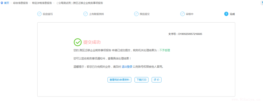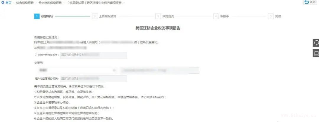 公司因發(fā)展需要,從A區(qū)搬到B區(qū),仍在本市經(jīng)營(yíng)。但由于工商注冊(cè)地行政區(qū)劃變更,現(xiàn)在怎么變更主管稅務(wù)機(jī)關(guān)?還需要辦理清稅注銷嗎? 業(yè)務(wù)前提 跨區(qū)遷移企業(yè)稅務(wù)事項(xiàng)報(bào)告所需要的前提條件: 1.納稅人狀態(tài)為正常; 2.課征主體登記類型為單位納稅人稅務(wù)登記; 3.不存在重復(fù)辦理的事項(xiàng) 功能節(jié)點(diǎn) 電子稅務(wù)局——我要辦稅——綜合信息報(bào)告——特定涉稅信息報(bào)告——跨區(qū)遷移企業(yè)稅務(wù)事項(xiàng)報(bào)告 操作步驟 登錄電子稅務(wù)局,點(diǎn)擊首頁(yè)菜單欄中“我要辦稅”中的“綜合信息報(bào)告”菜單 點(diǎn)擊“特定涉稅信息報(bào)告”欄中的“跨區(qū)遷移企業(yè)稅務(wù)事項(xiàng)報(bào)告”進(jìn)入辦理頁(yè)面。 第一步:點(diǎn)擊跨區(qū)遷移企業(yè)稅務(wù)事項(xiàng)報(bào)告,填寫表單 1. 默認(rèn)自動(dòng)帶出當(dāng)前外部門信息交換中工商地址的信息,作為將要變更的遷入地的行政區(qū)劃和填寫注冊(cè)地址。如您已變更注冊(cè)地址,跨區(qū)遷移前后注冊(cè)地址可能一致,請(qǐng)確認(rèn)遷出地、遷入地主管稅務(wù)機(jī)關(guān)信息正確即可。 目前電子稅務(wù)局跨區(qū)遷移企業(yè)稅務(wù)事項(xiàng)報(bào)告僅支持企業(yè)遷入地與外部門信息傳遞一致的情形,如您實(shí)際遷入地與系統(tǒng)帶出信息不一致,可由已通過(guò)實(shí)名認(rèn)證的辦稅人員,攜帶營(yíng)業(yè)執(zhí)照原件、辦稅人員本人身份證件原件、企業(yè)公章,前往市稅務(wù)登記受理處現(xiàn)場(chǎng)辦理。 2.選擇經(jīng)辦人(證件號(hào)碼和聯(lián)系電話自動(dòng)帶出)。 3.點(diǎn)擊提交系統(tǒng)會(huì)對(duì)當(dāng)前納稅人所有的指標(biāo)進(jìn)行校驗(yàn),請(qǐng)耐心等待。 若存在指標(biāo)校驗(yàn)未通過(guò)的情況,點(diǎn)擊指標(biāo)校驗(yàn)不通過(guò)頁(yè)面的【我知道了】,會(huì)跳轉(zhuǎn)到完成頁(yè)面,稅務(wù)機(jī)關(guān)處理結(jié)果為:“不予受理”,可以下載打印不予受理通知書。 若指標(biāo)校驗(yàn)成功,進(jìn)入第二步。 第二步:上傳附報(bào)資料 注:該事項(xiàng)無(wú)需上傳附報(bào)資料,直接點(diǎn)擊下一步。 第三步:提交預(yù)覽 點(diǎn)擊提交,進(jìn)行確認(rèn)提交 第四步:審核簽名 確認(rèn)上述需要申領(lǐng)的發(fā)票信息無(wú)誤后輸入CA密碼進(jìn)行數(shù)字簽名。 插入CA證書,輸入正確的CA密碼,點(diǎn)擊[驗(yàn)證]按鈕繼續(xù)操作。 第五步:提交成功。 等待3-5分鐘后點(diǎn)擊“辦稅進(jìn)度及結(jié)果查詢”中查看事項(xiàng)進(jìn)度 下載打印: 點(diǎn)擊查看后,下載打印,可以查看相應(yīng)的通知書 1. 稅務(wù)事項(xiàng)通知書 2. 稅務(wù)事項(xiàng)報(bào)告 至此事項(xiàng)辦理結(jié)束。 |