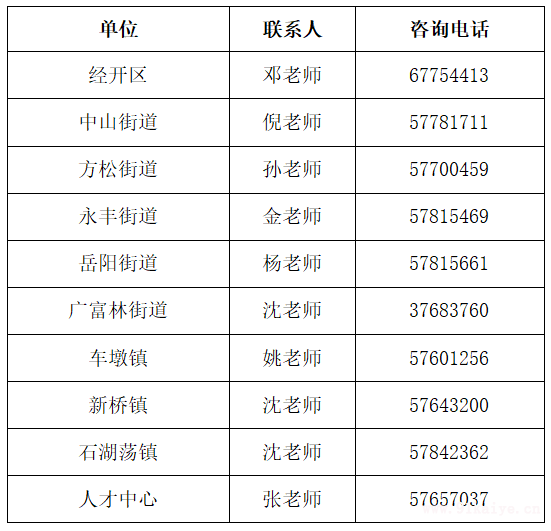上海松江區(qū)應(yīng)屆生落戶咨詢官方電話 松江新城各街鎮(zhèn)、經(jīng)開區(qū)及人才中心咨詢電話 咨詢時間:周一至周五(節(jié)假日除外)上午9:00-11:00;下午13:30-16:30 松江新城各單位: 根據(jù)《上海市教育委員會 上海市發(fā)展和改革委員會 上海市人力資源和社會保障局上海市公安局關(guān)于做好2022年非上海生源應(yīng)屆普通高校畢業(yè)生進(jìn)滬就業(yè)工作的通知》(滬教委學(xué)〔2022〕24號),在滬“雙一流”建設(shè)高校的應(yīng)屆本科畢業(yè)生,在五個新城、南北地區(qū)重點轉(zhuǎn)型地區(qū)用人單位工作的,符合當(dāng)年度非上海生源應(yīng)屆普通高校畢業(yè)生進(jìn)滬就業(yè)申請本市戶籍辦法規(guī)定的基本條件即可落戶,F(xiàn)向松江新城所屬區(qū)域的單位統(tǒng)計非上海生源在滬“雙一流”建設(shè)高校的應(yīng)屆本科畢業(yè)生的招錄情況。 以上是玖邀開業(yè)網(wǎng)小編為您整理的關(guān)于上海松江區(qū)應(yīng)屆生落戶咨詢官方電話的內(nèi)容,希望對您有所幫助。 |