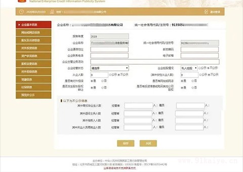 工商年報怎么報 第一步 輸入網(wǎng)址http://www.gsxt.gov.cn 進(jìn)入國家企業(yè)信用信息公示系統(tǒng)首頁。也可使用百度或其它瀏覽器,在搜索欄輸入“國家企業(yè)信用信息公示系統(tǒng)”,在搜索結(jié)果頁面點(diǎn)擊第一個搜索結(jié)果(尾綴有官網(wǎng)字樣)進(jìn)入系統(tǒng)主頁面。 第二步 進(jìn)入首頁后,點(diǎn)擊“企業(yè)信息填報”圖標(biāo),在彈出頁面選擇所在地(上海)后,進(jìn)入企業(yè)信息填報頁面。 第三步 在“統(tǒng)一社會信用代碼/注冊號”欄內(nèi)填寫社會統(tǒng)一信用代碼,企業(yè)名稱會自動彈出,在“工商聯(lián)絡(luò)員身份證號碼”欄內(nèi)輸入聯(lián)絡(luò)員身份證號碼,鼠標(biāo)左鍵在頁面空白處點(diǎn)擊一下,3-5秒后,工商聯(lián)絡(luò)員姓名及手機(jī)號碼會自動顯示出來,然后點(diǎn)擊“獲取驗證碼”,收到驗證碼后輸入,點(diǎn)擊“登錄”。 第四步 點(diǎn)擊左上角“年度報告填寫”。彈出年報須知,閱讀后,在下方“已閱”前的小框內(nèi)“∨”(對勾),再點(diǎn)確認(rèn)。如果以前存在沒有參加年報的年度,先需要將以前年度補(bǔ)報后才可申報本年度的。 第五步 填寫基本信息。需要填報的通信地址、郵政編碼、聯(lián)系電話、電子郵箱、存續(xù)狀態(tài)、網(wǎng)址、網(wǎng)站信息均為報送時的信息,其余信息為所報告年度12月31日的信息。如果有網(wǎng)站、對外擔(dān)保,就點(diǎn)“是否有網(wǎng)站或網(wǎng)店”后面的“是”字前的圓點(diǎn),如果沒有網(wǎng)站、對外擔(dān)保就點(diǎn)“否”字前的圓點(diǎn)。填寫完后點(diǎn)“保存”。 在填寫基本信息時,可根據(jù)具體情況選擇“是否有網(wǎng)站或網(wǎng)店”、“是否有對外擔(dān)保”,“本年度是否發(fā)生股東股權(quán)轉(zhuǎn)讓”,“是否有投資信息或購買其他公司股權(quán)”。若選擇“是”,則會在頁面上增加相應(yīng)的“網(wǎng)站或網(wǎng)店信息”、“對外擔(dān)保信息”等,反之,則沒有“網(wǎng)站或網(wǎng)店信息”、“對外投資信息”等的填寫頁面。 第六步 填寫網(wǎng)站或網(wǎng)店信息。如在基本信息頁面“是否有網(wǎng)站或網(wǎng)店”選擇“是”,則出現(xiàn)網(wǎng)站或網(wǎng)店填報頁面,點(diǎn)擊“添加”按鈕,彈出添加網(wǎng)站或網(wǎng)店頁面,如下圖所示。填寫后點(diǎn)擊保存。 第七步 填寫股東及出資信息,點(diǎn)擊“添加”進(jìn)行填寫。(分公司無需填寫)按照公司章程上約定的填寫股東出資額及出資時間,每一個股東(發(fā)起人)的出資信息只需填報一條,股東(發(fā)起人)認(rèn)繳和實繳出資額為截至報告年度12月31日的累計數(shù)額;認(rèn)繳和實繳出資時間為截至報告年度12月31日最后一次認(rèn)繳和實繳時間,出資方式可以多選。點(diǎn)擊“保存”。如還未發(fā)生實繳,則實繳部分暫時不需填寫,填寫認(rèn)繳信息后即可保存。注意:系統(tǒng)默認(rèn)填寫數(shù)額單位為萬元,填寫時要注意核對數(shù)額大小準(zhǔn)確性!只填寫數(shù)字即可,不要在數(shù)字后面加“萬”字,否則不能保存。 第八步 填寫股權(quán)變更信息,點(diǎn)擊左邊的“股權(quán)變更信息”,之后再點(diǎn)擊“保存”如未發(fā)生過股權(quán)變更的則無需填寫此項信息。點(diǎn)擊頁面下方的“添加”按鈕,彈出添加股權(quán)變更信息頁面,填寫相應(yīng)的信息,點(diǎn)擊“保存”按鈕,即可成功添加股權(quán)變更信息。如填寫信息需要修改,點(diǎn)擊“修改”,彈出修改頁面,修改相關(guān)信息。然后點(diǎn)擊“保存”按鈕,修改成功。最后再點(diǎn)擊“保存”按鈕,進(jìn)入下一部分內(nèi)容的填寫頁面。 第九步 填寫對外投資信息。點(diǎn)擊左邊的“對外投資信息”,之后再根據(jù)實際情況點(diǎn)擊“添加”填寫相關(guān)信息,填寫完成后點(diǎn)擊“保存”。如無對外投資情況的則無需填寫此項信息。 第十步 填寫資產(chǎn)狀況信息。點(diǎn)擊左邊“資產(chǎn)狀況信息”填寫后保存。企業(yè)資產(chǎn)狀況信息,應(yīng)當(dāng)是企業(yè)年度資產(chǎn)負(fù)債表和損益表(利潤表)中的期末數(shù);納稅總額為企業(yè)全年實繳各類稅金的總和。 根據(jù)審計報告、資產(chǎn)負(fù)債等如實填寫企業(yè)資產(chǎn)狀況,若選擇“公示”則對外公示,若選擇“不公示”,則公示查看該指標(biāo)不對外公示,顯示“不公示”。 此處填寫時應(yīng)注意: 1) 資產(chǎn)總額=所有者權(quán)益合計+負(fù)債總額。 2) 負(fù)債總額不可為負(fù)值。 3) 營業(yè)總收入>=主營業(yè)務(wù)收入。 4) 利潤總額>凈利潤。 5)系統(tǒng)設(shè)置數(shù)額單位是“萬元”,僅填寫數(shù)字即可,并注意核對數(shù)據(jù)準(zhǔn)確性。點(diǎn)擊“保存”按鈕,進(jìn)入下一部分內(nèi)容的填寫頁面。 第十一步 填寫對外擔(dān)保信息。點(diǎn)擊左邊的對外擔(dān)保信息,根據(jù)實際情況進(jìn)行添加之后點(diǎn)擊“保存”。如無對外擔(dān)保情況的則無需填寫此項信息。 第十二步 填寫黨建信息。黨建信息為不公示信息,主要采集私營企業(yè)黨組織的建立情況,但屬于抽查范圍,請注意如實填寫。其中,中共黨員(包括預(yù)備黨員)人數(shù),為截至年度報告年份12月31日的人數(shù)。如企業(yè)暫無黨員,填