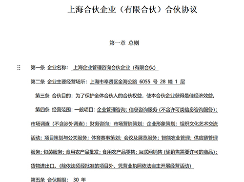 第二條 本企業(yè)為有限合伙企業(yè),是根據(jù)協(xié)議自愿組成的共同經(jīng)營體,全體合伙人愿自覺遵守本協(xié)議,依法納稅,守法經(jīng)營。