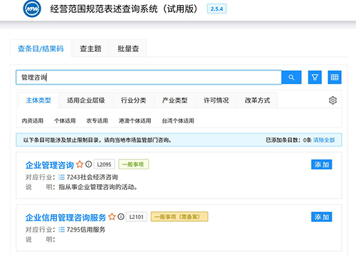 | 上海注冊企業(yè)管理咨詢公司經(jīng)營范圍大全 企業(yè)管理咨詢公司經(jīng)營范圍:許可項(xiàng)目:代理記賬。(依法須經(jīng)批準(zhǔn)的項(xiàng)目,經(jīng)相關(guān)部門批準(zhǔn)后方可開展經(jīng)營活動,具體經(jīng)營項(xiàng)目以相關(guān)部門批準(zhǔn)文件或許可證件為準(zhǔn))一般項(xiàng)目:企業(yè)管理咨詢;市場營銷策劃;財(cái)務(wù)咨詢;人力資源服務(wù)(不含職業(yè)中介活動、勞務(wù)派遣服務(wù));企業(yè)形象策劃;個(gè)人商務(wù)服務(wù);貿(mào)易經(jīng)紀(jì);會議及展覽服務(wù);市場主體登記注冊代理。(除依法須經(jīng)批準(zhǔn)的項(xiàng)目外,憑營業(yè)執(zhí)照依法自主開展經(jīng)營活動) 企業(yè)管理咨詢公司經(jīng)營范圍:一般項(xiàng)目:企業(yè)管理咨詢;網(wǎng)絡(luò)技術(shù)服務(wù);技術(shù)服務(wù)、技術(shù)開發(fā)、技術(shù)咨詢、技術(shù)交流、技術(shù)轉(zhuǎn)讓、技術(shù)推廣;信息咨詢服務(wù)(不含許可類信息咨詢服務(wù));信息系統(tǒng)集成服務(wù);廣告設(shè)計(jì)、代理;廣告制作;廣告發(fā)布;會議及展覽服務(wù);計(jì)算機(jī)軟硬件及輔助設(shè)備批發(fā);計(jì)算機(jī)軟硬件及輔助設(shè)備零售;信息技術(shù)咨詢服務(wù);社會經(jīng)濟(jì)咨詢服務(wù);互聯(lián)網(wǎng)銷售(除銷售需要許可的商品)。(除依法須經(jīng)批準(zhǔn)的項(xiàng)目外,憑營業(yè)執(zhí)照依法自主開展經(jīng)營活動) 企業(yè)管理咨詢公司經(jīng)營范圍:一般項(xiàng)目:企業(yè)管理咨詢;工程管理服務(wù);互聯(lián)網(wǎng)銷售(除銷售需要許可的商品);金屬材料銷售;電力電子元器件銷售;化工產(chǎn)品銷售(不含許可類化工產(chǎn)品);衛(wèi)生潔具銷售;衛(wèi)生陶瓷制品銷售;建筑裝飾材料銷售;建筑材料銷售;辦公用品銷售;家具銷售;紙制品銷售;通訊設(shè)備銷售;家用電器銷售;針紡織品銷售;燈具銷售;電子產(chǎn)品銷售;日用百貨銷售;機(jī)械設(shè)備銷售;橡膠制品銷售;塑料制品銷售;環(huán)境保護(hù)專用設(shè)備銷售;包裝材料及制品銷售;音響設(shè)備銷售;化妝品批發(fā);汽車零配件批發(fā);廚具衛(wèi)具及日用雜品批發(fā);珠寶首飾批發(fā);照相器材及望遠(yuǎn)鏡批發(fā);體育用品及器材批發(fā);五金產(chǎn)品批發(fā);計(jì)算機(jī)軟硬件及輔助設(shè)備批發(fā)。(除依法須經(jīng)批準(zhǔn)的項(xiàng)目外,憑營業(yè)執(zhí)照依法自主開展經(jīng)營活動)許可項(xiàng)目:建設(shè)工程監(jiān)理。(依法須經(jīng)批準(zhǔn)的項(xiàng)目,經(jīng)相關(guān)部門批準(zhǔn)后方可開展經(jīng)營活動,具體經(jīng)營項(xiàng)目以相關(guān)部門批準(zhǔn)文件或許可證件為準(zhǔn)) 企業(yè)管理咨詢公司經(jīng)營范圍:許可項(xiàng)目:海關(guān)監(jiān)管貨物倉儲服務(wù)(不含危險(xiǎn)化學(xué)品、危險(xiǎn)貨物)。(依法須經(jīng)批準(zhǔn)的項(xiàng)目,經(jīng)相關(guān)部門批準(zhǔn)后方可開展經(jīng)營活動,具體經(jīng)營項(xiàng)目以相關(guān)部門批準(zhǔn)文件或許可證件為準(zhǔn))一般項(xiàng)目:企業(yè)管理咨詢;國內(nèi)貨物運(yùn)輸代理;普通貨物倉儲服務(wù)(不含危險(xiǎn)化學(xué)品等需許可審批的項(xiàng)目);供應(yīng)鏈管理服務(wù);信息咨詢服務(wù)(不含許可類信息咨詢服務(wù));財(cái)務(wù)咨詢;人力資源服務(wù)(不含職業(yè)中介活動、勞務(wù)派遣服務(wù));市場營銷策劃;技術(shù)服務(wù)、技術(shù)開發(fā)、技術(shù)咨詢、技術(shù)交流、技術(shù)轉(zhuǎn)讓、技術(shù)推廣。(除依法須經(jīng)批準(zhǔn)的項(xiàng)目外,憑營業(yè)執(zhí)照依法自主開展經(jīng)營活動) 企業(yè)管理咨詢公司經(jīng)營范圍:一般項(xiàng)目:企業(yè)管理咨詢;企業(yè)形象策劃;信息技術(shù)咨詢服務(wù);貿(mào)易經(jīng)紀(jì);會議及展覽服務(wù);組織文化藝術(shù)交流活動;品牌管理;科普宣傳服務(wù);市場營銷策劃;技術(shù)服務(wù)、技術(shù)開發(fā)、技術(shù)咨詢、技術(shù)交流、技術(shù)轉(zhuǎn)讓、技術(shù)推廣;健康咨詢服務(wù)(不含診療服務(wù));信息咨詢服務(wù)(不含許可類信息咨詢服務(wù));裝卸搬運(yùn);文具用品零售;體育用品及器材零售;日用品銷售;儀器儀表銷售;計(jì)算機(jī)軟硬件及輔助設(shè)備零售;通訊設(shè)備銷售;電子產(chǎn)品銷售;五金產(chǎn)品零售;家用電器銷售;機(jī)械設(shè)備銷售。(除依法須經(jīng)批準(zhǔn)的項(xiàng)目外,憑營業(yè)執(zhí)照依法自主開展經(jīng)營活動) 企業(yè)管理咨詢公司經(jīng)營范圍:許可項(xiàng)目:海關(guān)監(jiān)管貨物倉儲服務(wù)(不含危險(xiǎn)化學(xué)品、危險(xiǎn)貨物)。(依法須經(jīng)批準(zhǔn)的項(xiàng)目,經(jīng)相關(guān)部門批準(zhǔn)后方可開展經(jīng)營活動,具體經(jīng)營項(xiàng)目以相關(guān)部門批準(zhǔn)文件或許可證件為準(zhǔn))一般項(xiàng)目:企業(yè)管理咨詢;國內(nèi)貨物運(yùn)輸代理;普通貨物倉儲服務(wù)(不含危險(xiǎn)化學(xué)品等需許可審批的項(xiàng)目);供應(yīng)鏈管理服務(wù);信息咨詢服務(wù)(不含許可類信息咨詢服務(wù));財(cái)務(wù)咨詢;人力資源服務(wù)(不含職業(yè)中介活動、勞務(wù)派遣服務(wù));市場營銷策劃;技術(shù)服務(w