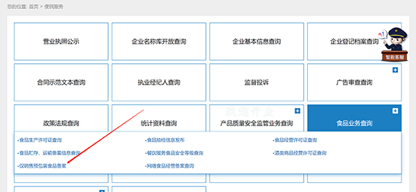 第二步:選擇食品業(yè)務(wù)查詢→僅銷售預(yù)包裝食品備案