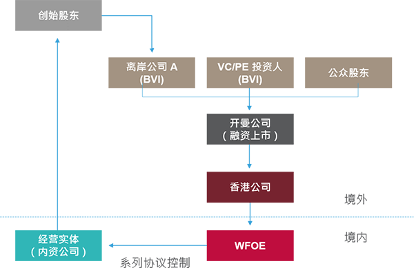 國內(nèi)民營企業(yè)為獲得外資VC的投資,通常采用“紅籌架構(gòu)”的方式,企業(yè)原始股東在海外注冊離岸控股公司,然后以離岸公司的身份,反向換股收購國內(nèi)的經(jīng)營實體(離岸公司獲得海外VC的股權(quán)投資)。海外控股公司注冊地,通常是在BVI(英屬維爾京群島)、開曼群島、百慕大群島或者我國的香港。 假設(shè)甲先生與乙先生共同投資擁有一家境內(nèi)公司,其中甲占注冊資本的70%,乙占注冊資本的30%。一般來說,紅籌架構(gòu)的基本步驟是: (1) 首先甲、乙按照國內(nèi)公司的出資比例,在BVI設(shè)立BVI-A公司,即所謂的特殊目的公司(SPV)。 (2) 然后,BVI-A公司以股權(quán)、現(xiàn)金等方式收購國內(nèi)公司的股權(quán),則國內(nèi)公司變成BVI公司的全資子公司,即外商獨資公司也就是WOFE。只要BVI公司(收購方)和境內(nèi)公司(被收購方)擁有完全一樣的股東及持股比例,在收購后,國內(nèi)公司的所有運作基本上完全轉(zhuǎn)移到BVI公司中 (3) BVI-A公司在開曼群島(或百大群島)注冊成立一家開曼公司,BVI-A公司又將其擁有的國內(nèi)公司的全部股權(quán)轉(zhuǎn)讓給開曼公司。開曼公司間接擁有國內(nèi)公司的控制權(quán),它將作為VC融資的主體和日后境外掛牌上市的主體,同時也作為員工期權(quán)設(shè)置的主體。 (4) 甲、乙共同在BVI設(shè)立BVI-B公司,或分別設(shè)立BVI-B1和BVI-B2公司,以公司的形式持有甲、乙在開曼公司的股份。 由于BVI公司屬于“外商”范疇,根據(jù)《指導(dǎo)外商投資暫行規(guī)定》和《外商投資產(chǎn)業(yè)指導(dǎo)目錄》的規(guī)定,有些行業(yè)可能不允許外商獨資或控股,因此以上操作方式就不適合。比如國內(nèi)公司從事的是電信、互聯(lián)網(wǎng)、傳媒等需要牌照的行業(yè),或者是部分敏感行業(yè)(如政府采購、軍隊采購)等,國內(nèi)公司就不適和直接被BVI-A公司反向收購轉(zhuǎn)換成WOFE。 此時,可以通過BVI-A公司在國內(nèi)設(shè)立WOFE,收購國內(nèi)企業(yè)的部分資產(chǎn),并通過為國內(nèi)企業(yè)提供壟斷性咨詢、管理和服務(wù)的方式,換取國內(nèi)企業(yè)的全部或絕大部分收入。同時,該外商獨資企業(yè)還應(yīng)通過合同,取得對境內(nèi)企業(yè)全部股份的優(yōu)先購買權(quán)、抵押權(quán)和投票表決權(quán)(即所謂“新浪模式”)。 在BVI注冊公司的原因是BVI對公司注冊的要求簡單,公司信息保密性強(qiáng),但其透明度低導(dǎo)致很難被大多數(shù)資本市場接受上市,而在開曼群島、百慕大注冊的公司可以在美國,我國的香港,或許多其他國家或地區(qū)申請掛牌上市。 在國內(nèi)公司和開曼公司中間加一家BVI-A公司,在重組過程中,BVI-A公司作為外商投資收購國內(nèi)企業(yè)的主體,控股國內(nèi)企業(yè),而開曼公司又100%擁有BVI-A公司的股權(quán)。如果以后上市公司有新的業(yè)務(wù),可在開曼公司下另設(shè)BVI公司,使從事不同業(yè)務(wù)的公司間彼此獨立。同時,如果將來國內(nèi)公司的具體經(jīng)營發(fā)生變更等情況時,有BVI-A公司的緩沖的作用,不至于影響上市公司的穩(wěn)定性。另外,如果沒有BVI-A公司,當(dāng)VC及其他投資人出售開曼公司股份時,會造成國內(nèi)公司股權(quán)結(jié)構(gòu)的變更,可能涉及國內(nèi)三資企業(yè)的相關(guān)規(guī)定,需辦登記相關(guān)變更事宜。 在開曼公司與直接控制人甲、乙之間多設(shè)立一家公司(BVI-B公司)有利于將來甲、乙的個人行為不至于影響上市公司的穩(wěn)定性,同樣也起到一個緩沖的作用。 |