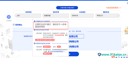新注冊公司流程中,最難的步驟就是給公司取名,好聽的,有寓意的公司名稱往往在公司核名的時候都會被駁回,從而浪費注冊時間,那么上海注冊公司流程中如何查詢公司名稱是否可以使用? 1、打開上海一網(wǎng)通辦網(wǎng)址:https://yct.sh.gov.cn/portal_yct/,點擊開辦[如圖] 2、公司名稱組成要素公司名稱一般由四部分組成:行政區(qū)劃、字號、行業(yè)(非必填項)、組織形式。 如:上海(行政區(qū)劃)+玖邀開業(yè)(字號)+信息科技(行業(yè))+有限公司(組織形式) 。[如圖], 3、如何判斷公司名字是否可以使用(不通過)如果出現(xiàn)紅色文字,名稱禁用詞或在計算機(jī)對比不通過,說明需要重新起名,禁用詞是肯定用不了,計算對對比不通過,那么說明公司核名通過的概率非常低,需要提供備選名稱!救鐖D】 4、如何判斷公司名字是否可以使用(通過)如果計算機(jī)對比通過,說明名稱可通過的概率非常高,正常情況下可以通過【如圖】 以上是玖邀開業(yè)小編整理的公司重名查詢(上海注冊公司流程中如何查詢公司名稱是否可以使用)相關(guān)知識,相信大家通過以上知識都已經(jīng)對此有了大致的了解,如果您還遇到什么問題,歡迎咨詢在線客服。 |