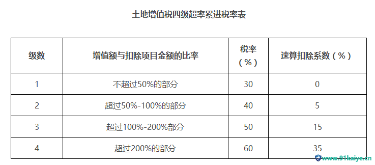 土地增值稅四級(jí)稅率表