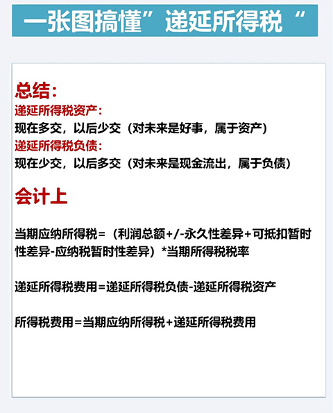遞延所得稅費(fèi)用是會(huì)計(jì)上的一個(gè)概念,指的是由于會(huì)計(jì)準(zhǔn)則與稅法規(guī)定之間的差異,導(dǎo)致企業(yè)在一定時(shí)期內(nèi)確認(rèn)的所得稅費(fèi)用與按照稅法規(guī)定當(dāng)期應(yīng)繳納的所得稅金額之間的差異。這種差異會(huì)在未來期間內(nèi)逐漸得到轉(zhuǎn)回或確認(rèn)。 遞延所得稅費(fèi)用主要來源于可抵扣暫時(shí)性差異。當(dāng)企業(yè)資產(chǎn)的賬面價(jià)值小于其計(jì)稅基礎(chǔ),或負(fù)債的賬面價(jià)值大于其計(jì)稅基礎(chǔ)時(shí),就會(huì)產(chǎn)生可抵扣暫時(shí)性差異。這種差異在發(fā)生時(shí),企業(yè)會(huì)將其對(duì)所得稅的影響確認(rèn)為遞延所得稅資產(chǎn),并在未來期間內(nèi)轉(zhuǎn)回時(shí)確認(rèn)為遞延所得稅費(fèi)用。 遞延所得稅費(fèi)用的計(jì)算涉及遞延所得稅資產(chǎn)和遞延所得稅負(fù)債的變動(dòng)。具體計(jì)算公式如下: 遞延所得稅費(fèi)用=遞延所得稅負(fù)債的增加額+遞延所得稅資產(chǎn)的減少額-遞延所得稅負(fù)債的減少額-遞延所得稅資產(chǎn)的增加額 遞延所得稅資產(chǎn)的確認(rèn): 1.確認(rèn)條件: 應(yīng)以未來期間可能取得的應(yīng)納稅所得額為限(有條件的確認(rèn))即,遞延所得稅資產(chǎn)=基數(shù)×未來差異轉(zhuǎn)回期間的稅率 其中:基數(shù)(二者孰低) (1)可抵扣暫時(shí)性差異 (2)預(yù)計(jì)未來期間很可能取得的應(yīng)納稅所得額 2.會(huì)計(jì)分錄: 借:遞延所得稅資產(chǎn) 貸:商譽(yù) 資本公積(合并財(cái)務(wù)報(bào)表的評(píng)估減值) 其他綜合收益(如綜【債】的公允價(jià)值的變動(dòng)) 盈余公積/利潤(rùn)分配---未分配利潤(rùn)(會(huì)計(jì)政策變更或前期差錯(cuò)更正) 所得稅費(fèi)用(最常見) 3.遞延所得稅資產(chǎn)的確認(rèn)應(yīng)以未來期間很可能取得的應(yīng)納稅所得額為限。 在判斷企業(yè)于可抵扣暫時(shí)性差異轉(zhuǎn)回的未來期間能否產(chǎn)生足夠的應(yīng)納稅所得額時(shí),應(yīng)考慮以下兩個(gè)方面的影響: (1)通過正常的生產(chǎn)經(jīng)營(yíng)活動(dòng)能夠?qū)崿F(xiàn)的應(yīng)納稅所得額。 (2)以前期間產(chǎn)生的應(yīng)納稅暫時(shí)性差異在未來期間轉(zhuǎn)回時(shí)將產(chǎn)生應(yīng)納稅所得額的增加額。 4.特殊情況(如:未彌補(bǔ)虧損和稅款抵減) 相關(guān)規(guī)定: (1)對(duì)于按照稅法規(guī)定可以結(jié)轉(zhuǎn)以后年度的未彌補(bǔ)虧損的稅款抵減,應(yīng)視同可抵扣暫時(shí)性差異處理。 (2)應(yīng)當(dāng)以很可能取得的應(yīng)納稅所得額為限,確認(rèn)相應(yīng)的遞延所得稅資產(chǎn),同時(shí)減少確認(rèn)當(dāng)期的所得稅費(fèi)用。 會(huì)計(jì)分錄: 借:遞延所得稅資產(chǎn) 貸:所得稅費(fèi)用 不確認(rèn)遞延所得稅資產(chǎn)的特殊情形: 如果企業(yè)發(fā)生的某項(xiàng)交易或事項(xiàng)不是企業(yè)合并,并且交易發(fā)生時(shí)既不影響會(huì)計(jì)利潤(rùn)也不影響應(yīng)納稅所得額,且該項(xiàng)交易中產(chǎn)生的資產(chǎn)、負(fù)債的初始確認(rèn)金額與其計(jì)稅基礎(chǔ)不同,產(chǎn)生可抵扣暫時(shí)性差異的,會(huì)計(jì)準(zhǔn)則規(guī)定在交易或事項(xiàng)發(fā)生時(shí)不確認(rèn)相關(guān)的遞延所得稅資產(chǎn)。(如:加計(jì)扣除) |