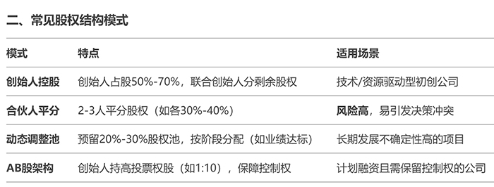 初創(chuàng)公司的股權(quán)結(jié)構(gòu)設(shè)計是公司發(fā)展的基石,直接影響團隊穩(wěn)定性、決策效率和融資能力。合理的股權(quán)分配需要平衡創(chuàng)始人、合伙人、員工和投資者的利益,以下是一份系統(tǒng)性的指南: 一、股權(quán)分配核心原則 1. 公平與激勵 - 根據(jù)貢獻(資金、技術(shù)、資源、時間)分配,避免純按出資比例分配。 - 預(yù)留期權(quán)池(10%-20%)用于未來人才激勵。 2. 控制權(quán)集中 - 核心創(chuàng)始人需保持足夠投票權(quán)(建議≥67%或51%),避免平均分配導(dǎo)致的決策僵局。 3. 動態(tài)調(diào)整機制 - 設(shè)置股權(quán)兌現(xiàn)條款(Vesting),如4年兌現(xiàn)期,離職未兌現(xiàn)部分回購。 - 預(yù)留股權(quán)池應(yīng)對后續(xù)融資稀釋。 二、常見股權(quán)結(jié)構(gòu)模式 三、股權(quán)分配比例建議 1. 早期團隊分配 - 創(chuàng)始人:50%-70%(需承擔(dān)主要責(zé)任與風(fēng)險) - 聯(lián)合創(chuàng)始人:各10%-20%(根據(jù)資源/技術(shù)價值) - 期權(quán)池:10%-20%(員工激勵) 2. 資源型合伙人 - 以業(yè)績對賭代替直接給股(如資源到位后兌現(xiàn)5%-10%)。 3. 避免陷阱 - 兼職合伙人:不建議給股,可轉(zhuǎn)化為顧問或績效獎勵。 - 早期投資人:天使輪稀釋建議≤20%,避免后續(xù)融資空間不足。 四、關(guān)鍵協(xié)議與機制 1. 股東協(xié)議 - 明確決策權(quán)、分紅規(guī)則、股權(quán)轉(zhuǎn)讓限制(如優(yōu)先購買權(quán))。 2. 退出機制 - 離職回購條款:約定未兌現(xiàn)股權(quán)以成本價/凈資產(chǎn)回購。 - 離婚/繼承風(fēng)險:提前簽署配偶同意書,限制股權(quán)轉(zhuǎn)移。 3. 控制權(quán)保障 - 一致行動人協(xié)議:聯(lián)合創(chuàng)始人投票權(quán)委托給核心創(chuàng)始人。 - 董事會席位:創(chuàng)始人占多數(shù),避免投資人過度干預(yù)。 五、股權(quán)結(jié)構(gòu)案例 案例1:科技型初創(chuàng)公司 - 創(chuàng)始人A(技術(shù)):60% - 聯(lián)合創(chuàng)始人B(運營):20% - 期權(quán)池:15% - 天使投資人:5% - 控制權(quán):創(chuàng)始人A通過AB股持有70%投票權(quán)。 案例2:消費品初創(chuàng)公司 - 創(chuàng)始人:40%(出資+全職) - 資源合伙人:15%(供應(yīng)鏈資源,分3年兌現(xiàn)) - 技術(shù)合伙人:15% - 期權(quán)池:20% - 早期融資:10% 六、常見錯誤與規(guī)避 1. 過早分配:未預(yù)留足夠期權(quán)池,導(dǎo)致后期人才激勵困難。 2. 資源承諾股:資源未兌現(xiàn)即給股,建議分階段兌現(xiàn)。 3. 平均分配:3人各33%股權(quán),導(dǎo)致融資時投資人質(zhì)疑決策效率。 總結(jié) 股權(quán)結(jié)構(gòu)需在早期明確,結(jié)合公司戰(zhàn)略、團隊角色和融資規(guī)劃動態(tài)調(diào)整。建議通過以下步驟操作: 1. 評估團隊成員的長期價值和貢獻; 2. 簽訂書面協(xié)議,明確退出機制; 3. 預(yù)留至少10%-20%期權(quán)池; 4. 引入專業(yè)法律顧問審核結(jié)構(gòu)。 |