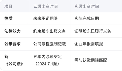 注冊(cè)公司出資時(shí)間是指股東承諾繳納或?qū)嶋H繳納認(rèn)繳出資的時(shí)限,依據(jù)《公司法》及公司章程約定確定,具體分為認(rèn)繳出資時(shí)間和實(shí)繳出資時(shí)間兩種類型,其含義及法律要求如下: 一、認(rèn)繳出資時(shí)間 定義 股東在公司章程中承諾完成出資的最終期限,是股東履行出資義務(wù)的法律依據(jù)。 填寫(xiě)規(guī)則 需明確到具體日期(如2030年12月31日); 分期出資的,每期均需約定獨(dú)立時(shí)限。 法律意義 未按期繳足需承擔(dān)違約責(zé)任,并可能影響公司信用。 二、實(shí)繳出資時(shí)間 定義 股東實(shí)際將資金注入公司賬戶或完成非貨幣資產(chǎn)過(guò)戶的具體日期。 填寫(xiě)規(guī)則 貨幣出資:以銀行入賬時(shí)間為準(zhǔn); 非貨幣出資:以權(quán)屬轉(zhuǎn)移登記日為憑據(jù)。 特殊情形 未實(shí)際出資時(shí),年報(bào)中實(shí)繳金額填“0”,時(shí)間填報(bào)告期末日(如12月31日)。 三、認(rèn)繳與實(shí)繳的區(qū)別 四、關(guān)鍵注意事項(xiàng) 五年實(shí)繳期限 2024年7月1日后新設(shè)公司:須自成立日起5年內(nèi)繳足全部認(rèn)繳出資; 存量公司過(guò)渡期:2027年6月30日前需調(diào)整出資期限至5年內(nèi)(如原期限超5年)。 信息一致性 企業(yè)年報(bào)公示的實(shí)繳金額與時(shí)間需真實(shí),否則可能引發(fā)信用風(fēng)險(xiǎn)或股東責(zé)任糾紛。 章程核心地位 出資時(shí)間以公司章程記載為準(zhǔn),修改需經(jīng)股東會(huì)2/3以上表決通過(guò)。 示例場(chǎng)景: 某公司2025年1月1日注冊(cè),注冊(cè)資本500萬(wàn)元,章程約定: 認(rèn)繳時(shí)間:2030年1月1日(未超5年期限); 實(shí)繳時(shí)間:若股東2025年6月1日轉(zhuǎn)賬100萬(wàn)元,則填寫(xiě)該日期;若未出資,年報(bào)中實(shí)繳金額填“0”,時(shí)間填“2025年12月31日”。 |