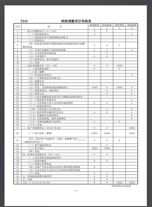 A105000表將調(diào)整項(xiàng)目分為收入類、扣除類、資產(chǎn)類、特殊事項(xiàng)等幾大類。以下是關(guān)鍵項(xiàng)目的編標(biāo)規(guī)則: