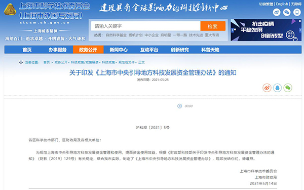 上海市中央引導地方科技發(fā)展資金管理辦法 第一章 總 則 第一條(目的依據(jù)) 為規(guī)范上海市中央引導地方科技發(fā)展資金管理,提高引導資金使用效益,推進本市科技創(chuàng)新驅(qū)動發(fā)展,根據(jù)《中央引導地方科技發(fā)展資金管理辦法》(財教〔2019〕129號)的規(guī)定,結(jié)合本市實際,制定本辦法。 第二條(適用范圍) 上海市中央引導地方科技發(fā)展資金(以下簡稱引導資金)是指中央財政用于支持和引導本市落實國家創(chuàng)新驅(qū)動發(fā)展戰(zhàn)略和科技改革發(fā)展政策、優(yōu)化區(qū)域科技創(chuàng)新環(huán)境、提升區(qū)域科技創(chuàng)新能力的中央和地方共同財政事權(quán)轉(zhuǎn)移支付資金。 第三條(管理原則) 引導資金管理遵循“中央引導、省級統(tǒng)籌,簡政放權(quán)、激發(fā)活力,聚焦重點、突出績效”的原則。 第二章 組織管理和職責 第四條(管理部門) 引導資金由上海市科學技術(shù)委員會(以下簡稱市科委)和上海市財政局(以下簡稱市財政局)共同負責管理。 市科委負責制定中央引導地方科技發(fā)展資金相關(guān)管理政策,根據(jù)中央財政下達的年度預算,會同市財政局合理分配預算,制定年度引導資金實施方案,負責資金跟蹤管理、績效評價及日常監(jiān)管。 市財政局根據(jù)預算管理相關(guān)規(guī)定,負責引導資金的預算下達、資金撥付等工作,并會同市科委對專項資金使用情況進行監(jiān)督檢查、績效評價。 第五條(使用引導資金的單位職責) 使用引導資金的單位作為項目的承擔單位,是使用引導資金的責任主體,主要職責是:嚴格執(zhí)行引導資金各項管理規(guī)定,建立健全科研、財務、誠信等內(nèi)部管理制度;切實履行法人責任,規(guī)范管理使用資金,接受市科委等相關(guān)部門的指導、檢查并配合開展績效評價、監(jiān)督檢查和驗收等工作;項目下設(shè)課題的,課題承擔單位須接受項目承擔單位的指導、協(xié)調(diào)和監(jiān)督,對項目承擔單位負責。 第三章 支持范圍與支持方式 第六條(支持范圍) 引導資金支持以下四個方面: (一)自由探索類基礎(chǔ)研究。主要指聚焦探索未知的科學問題,結(jié)合基礎(chǔ)研究區(qū)域布局,自主設(shè)立的旨在開展自由探索類基礎(chǔ)研究的科技專項、科技基金等。 (二)科技創(chuàng)新基地建設(shè)。主要指符合本市相關(guān)規(guī)劃等建設(shè)的各類科技創(chuàng)新基地,包括依托大學、科研院所、企業(yè)、轉(zhuǎn)制科研機構(gòu)設(shè)立的科技創(chuàng)新基地(含省部共建國家重點實驗室、臨床醫(yī)學研究中心等),以及具有獨立法人資格的產(chǎn)業(yè)技術(shù)研究院、技術(shù)創(chuàng)新中心、新型研發(fā)機構(gòu)等。 (三)科技成果轉(zhuǎn)移轉(zhuǎn)化。主要指本市針對區(qū)域重點產(chǎn)業(yè)等開展科技成果轉(zhuǎn)移轉(zhuǎn)化活動,包括技術(shù)轉(zhuǎn)移機構(gòu)、人才隊伍和技術(shù)市場建設(shè),以及公益屬性明顯、引導帶動作用突出、惠及人民群眾廣泛的科技成果轉(zhuǎn)化示范項目等。 (四)區(qū)域創(chuàng)新體系建設(shè)。主要指國家自主創(chuàng)新示范區(qū)、國家科技創(chuàng)新中心、綜合性國家科學中心、可持續(xù)發(fā)展議程創(chuàng)新示范區(qū)、國家農(nóng)業(yè)高新技術(shù)產(chǎn)業(yè)示范區(qū)、創(chuàng)新型城區(qū)/園區(qū)等區(qū)域創(chuàng)新體系建設(shè),重點支持跨區(qū)域研發(fā)合作和區(qū)域內(nèi)科技型中小企業(yè)科技研發(fā)活動。 第七條(支持方式) 為充分發(fā)揮資金的引導作用,提高資金使用效率,引導資金采用事前直接補助或事后補助等方式予以支持。支持自由探索類基礎(chǔ)研究、科技創(chuàng)新基地建設(shè)和區(qū)域創(chuàng)新體系建設(shè)的資金,可采用直接補助、后補助、以獎代補等多種投入方式。支持科技成果轉(zhuǎn)移轉(zhuǎn)化的資金,可采用風險補償、后補助、創(chuàng)投引導等財政投入方式。 第八條(資金禁用) 引導資金不得用于支付各種罰款、捐款、贊助、投資、償還債務等支出,不得用于行政事業(yè)單位編制內(nèi)在職人員工資性支出和離退休人員離退休費,以及國家、本市規(guī)定禁止列支的其他支出。 第四章 項目和預算管理 第九條(項目申報) 市科委、市財政局按照科技部、財政部的要求,圍繞國家和本市科技創(chuàng)新發(fā)展目標和年度工作重點征集項目。項目申請單位按照相關(guān)申報要求,向市科委提交申請材料。 第十條(項目評審) 市科委會同市財政局,參照本市科技計劃管理的相關(guān)規(guī)定,組織專家或委托第三方專業(yè)機構(gòu)進行項目評審工作,確定擬支持項目。 第十一條(項目公示) 市科委和市財政局對擬使用引導資金資助的項目通過官方網(wǎng)站等媒介向社會公示,公示期不少于7日。 第十二條(方案報送) 市科委會同市財政局編制年度引導資金實施方案,包括當年引導資金總體目標和思路、重點任務、項目及資金安排計劃、區(qū)域績效目標等,其中重點任務、項目及資金安排計劃要加強與國家區(qū)域發(fā)展戰(zhàn)略任務相結(jié)合。實施方案隨資金分配情況報科技部、財政部備案,并抄送財政部上海監(jiān)管局。 第十三條(項目實施) 使用引導資金的單位應當